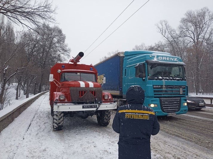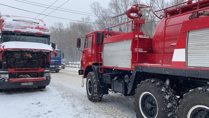 Сніговий колапс у Києві: рятувальники відбуксирували шість вантажівок (фото)
