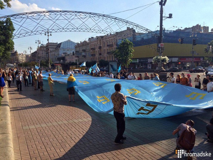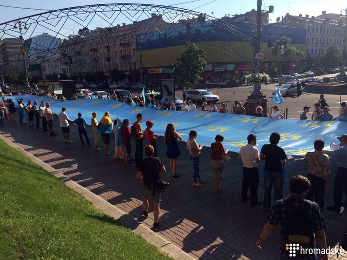 Сорокаметровий кримськотатарський прапор розгорнули у центрі Києва