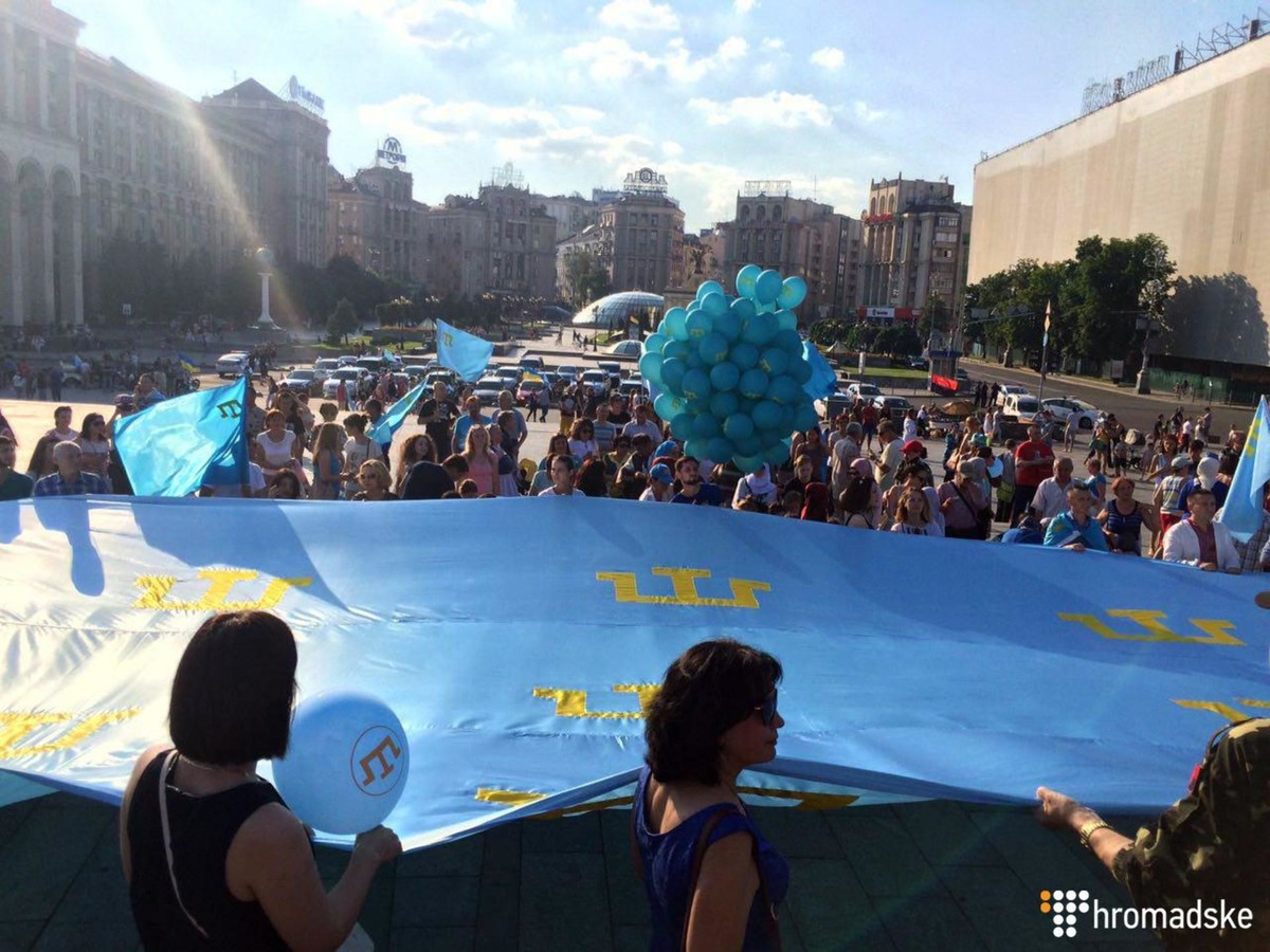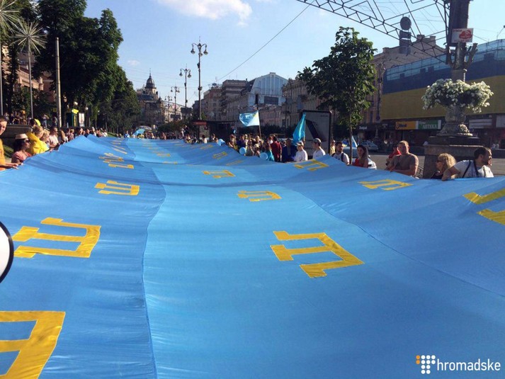На Майдані Незалежності стартувала хода на честь кримськотатарського прапору.