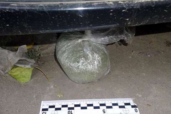 Спецпризначенці підійшли до автівки та виявили на асфальті поліетиленовий пакет із рослиною, ззовні схожою на коноплю. Правопорушник відмовився визнавати власність даної суміші та пояснив, що у його рюкзаку немає незаконних речей. Правоохоронці викликали на місце слідчо-оперативну групу.