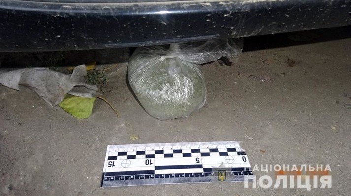 Як повідомляє пресслужба поліції Києва, правоохоронці помітили підозрілого перехожого. Побачивши поліцейських, він щось дістав зі свого рюкзака та викинув під машину, яка стояла поруч.