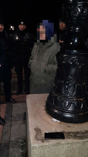 Спецпризначенці затримали молодика, який облив зеленкою пам’ятник на Печерську
