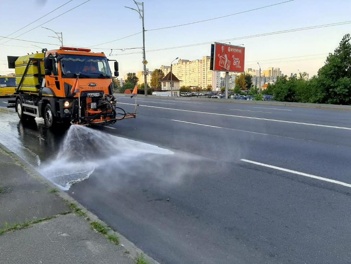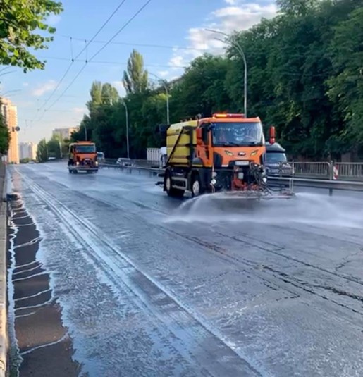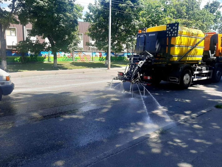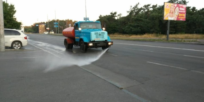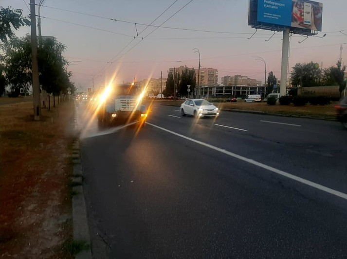 Робота проводиться цілодобово: магістральні вулиці поливаються вночі і рано вранці, інші дороги – упродовж доби.