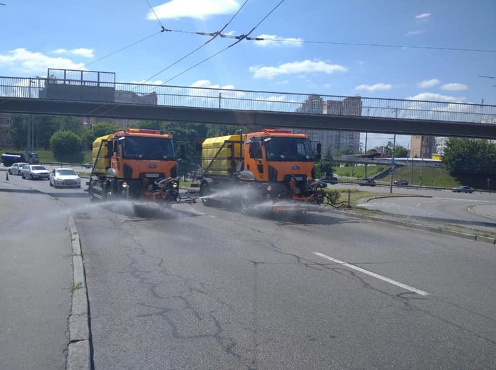 Через спеку дорожня служба Києва посилила полив вулиць міста. Нині задіяно 59 поливомийних машин. Також триває і миття проїжджих частин. Про це повідомляє пресслужба комунальної корпорації «Київавтодор».