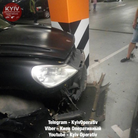 Спортсмен на автівці влетів у стовп столичного критого паркінгу (фото)
