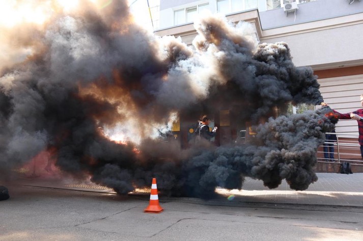 Справа про вбивство Гандзюк: активісти підпалили фаєри біля столичного суду (фото, відео)
