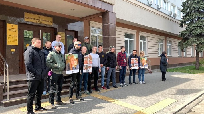 Декілька десятків активістів, які прийшли на засідання суду, влаштували акцію з вимогою покарати вбивць Гандзюк, повідомляє УНІАН.