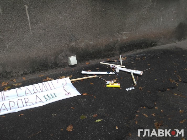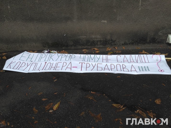 Також на місці затримання молодиків були виявлені плакати із закликом до звільнення в. о. голови Фонду держмайна Віталія Трубарова. На плакаті написано: «Генпрокурор, чому не садиш корупціонера Трубарова?».
