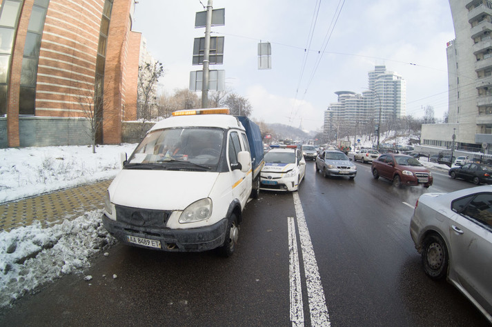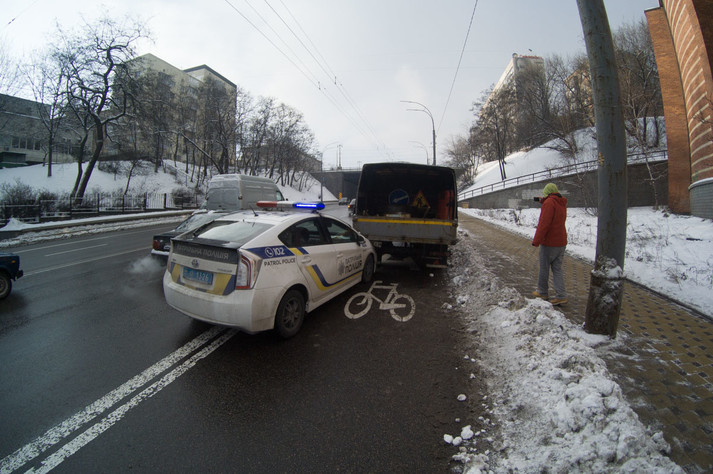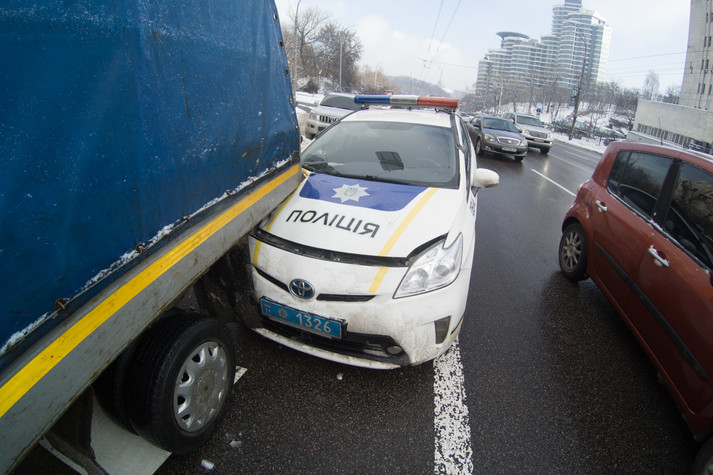 ДТП за участю поліцейського автомобіля Toyota Prius і «Газелі» співробітників «Київавтодору» на бульварі Дружби народів сталася, коли правоохоронці переслідували позашляховик Toyota Land Cruiser.