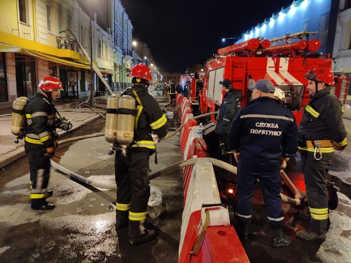 «Складність ліквідації цієї пожежі полягала в поширенні вогню по пустотах дерев’яного перекриття між першим та другим поверхом в сторону сусідніх будівель, де були розташовані магазини та інші заклади. Аби запобігти цьому, вогнеборці проводили роботи по розбиранню цих дерев’яних конструкцій перекриття, виявили там ще осередки займання, а також тління мінеральної будівельної вати та утеплювача. Попередивши подальше розповсюдження полум'я, бійці проливали пустоти між перекриттями», - розповіли у ДСНС.