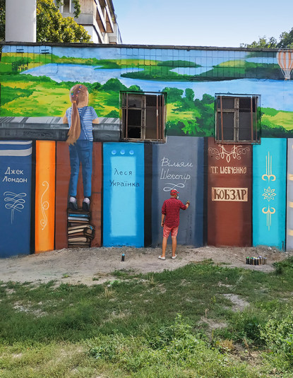 Мурал, який заохочує читати, створив відомий київський художник Віталій Гідеван.