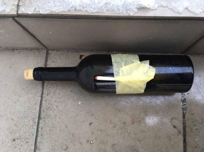 Внаслідок інциденту загоряння не сталося і ніхто не постраждав. З місця події експерти вилучили скляну пляшку зі слідами кіптяви обмотану клейкою стрічкою, рештки частин інших пляшок і рюкзак.