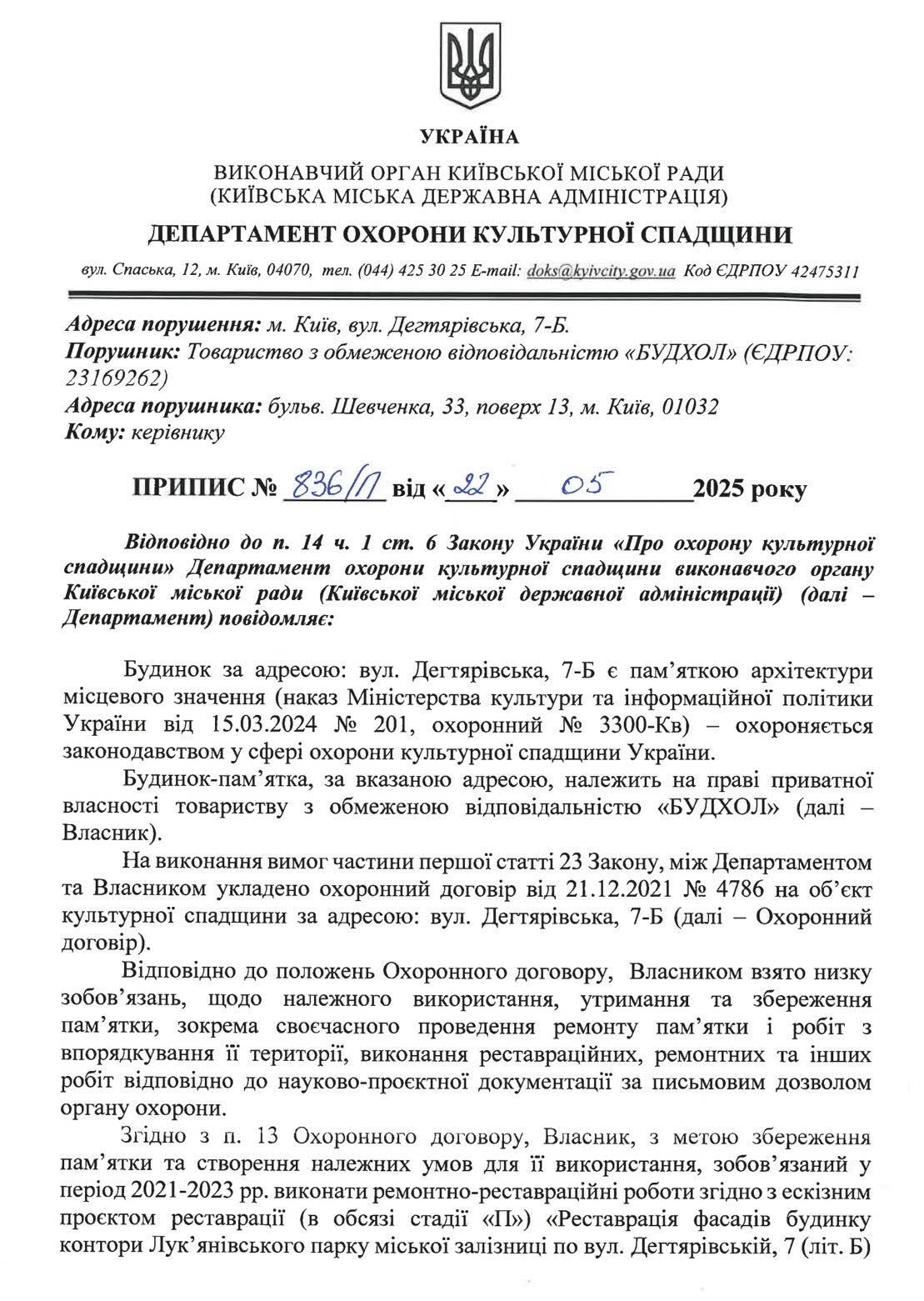 До слова, Київський окружний адміністративний суд визнав недійсними вимоги забудовника щодо скасування охоронного статусу садиби купця Йосифа Дмитрієва на вул. Хорива, 2 на Подолі. Суд підтримав збереження пам’ятки історії та архітектури, поклавши край семирічному протистоянню громади та бізнесу. Суд підтвердив, що об’єкт має залишатися під охороною держави як пам’ятка історії та архітектури.