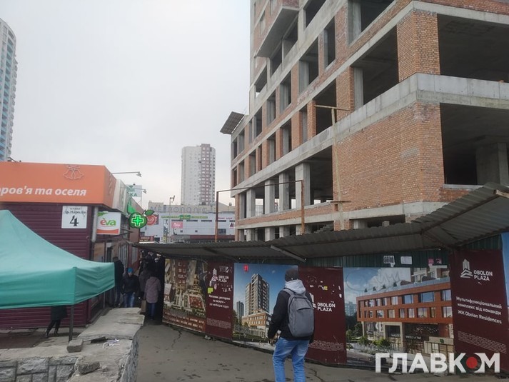 Впритул до метро «Оболонь» ТОВ «Соллур» зводить житловий комплекс Obolon Plaza. Через будівельні роботи людям доводиться терпіти незручності, адже прохід до метро значно звужений.