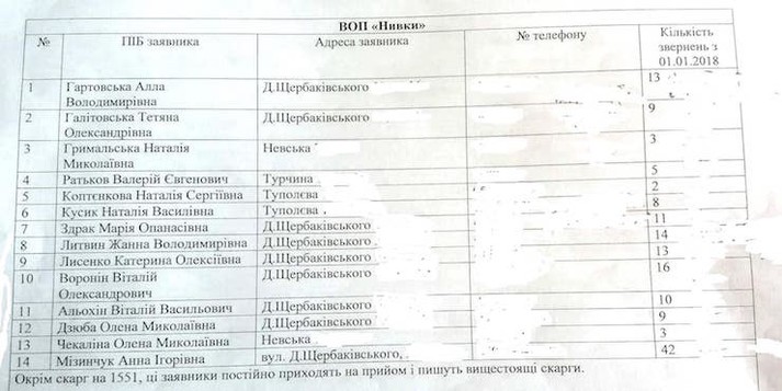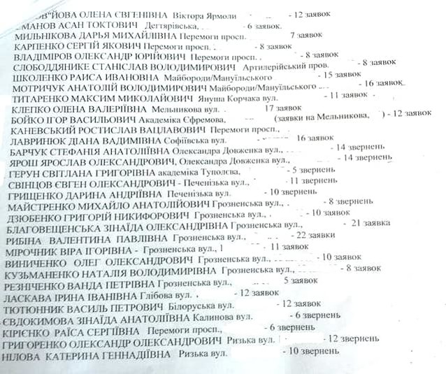 Група киян виявила існування списків тих, хто часто скаржиться на комунальні служби. За даними викладачки музики Наталії Коптєнкової, списки було розіслано з КМДА в поліклініки.