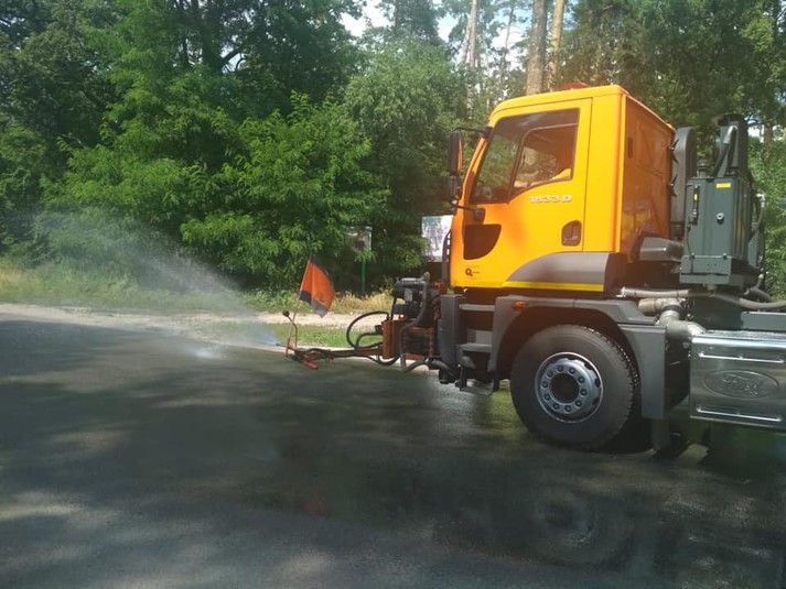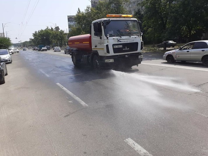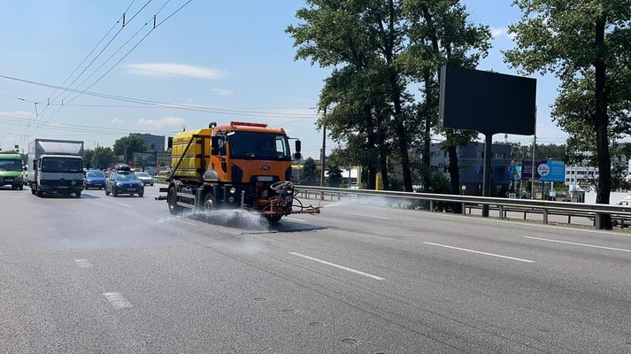 Столичні дорожники посилено поливають розпечені дороги (фото)