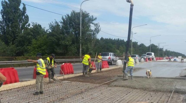 На іншому об’єкті - просп. Палладіна - дорожники упродовж вихідних влаштовували нижній шар асфальтобетонного покриття, а на шляхопроводі, який розташований на цій вулиці, тривали роботи з влаштування монолітної плити та опалубки на тротуарі.