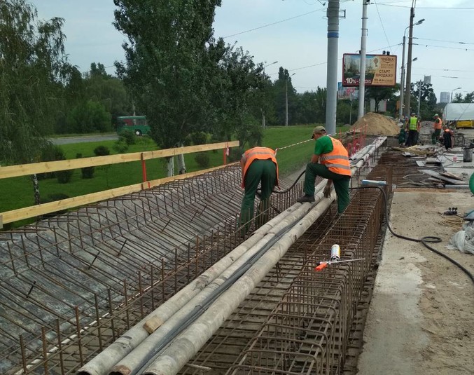 «Так, у цілодобовому режимі тривають роботи на бульв. Вацлава Гавела. У суботу та неділю виконувалися роботи з демонтажу та перевлаштування трамвайних переїздів, влаштування верхнього шару асфальтобетонного покриття на з'їзді з бульв. Вацлава Гавела на просп. Космонавта Комарова в напрямку центру міста та першого нижнього шару дорожнього одягу на проїзді в напрямку просп. Відрадного», - інформують дорожники.