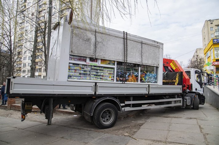 15 квітня бригади комунального підприємства «Київблагоустрій» точково демонтували МАФи без дозвільних документів на розміщення, що здійснювали заборонену торгівлю алкоголем. Демонтажі провели в Дарницькому (вул. Ревуцького), Дніпровському (б-р. Перова, вул. Космічна та Кибальчича) та Святошинському (просп. Перемоги, вул. Підлісна) районах столиці. Про це повідомив директор Департаменту міського благоустрою Тимур Ткаченко.