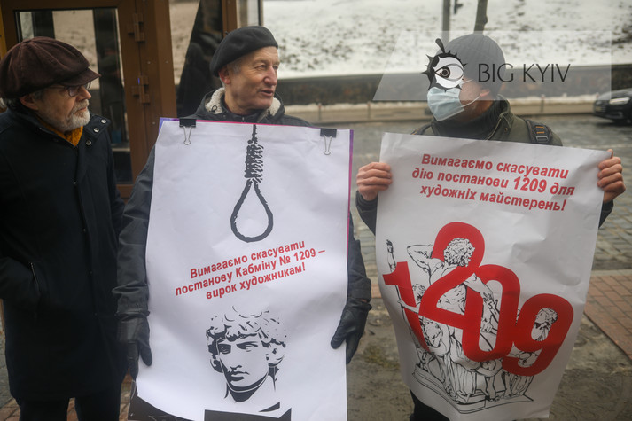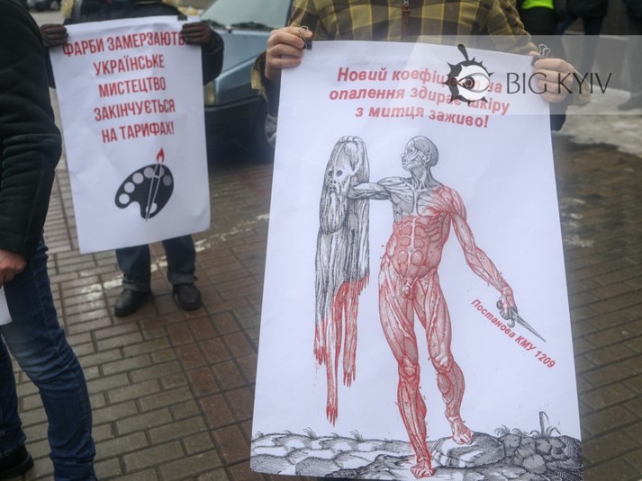 Сьогодні, 9 лютого, митці під Кабміном влаштували акцію протесту через високі тарифи. Постанова Кабміну 1209 по суті вбиває образотворче мистецтво України, адже оплата рахунків за новими тарифами за користування теплоенергією у приміщеннях майстерень є непідйомною сумою для художників, повідомляє Big Київ.