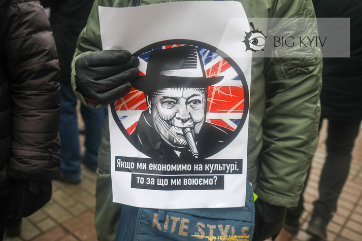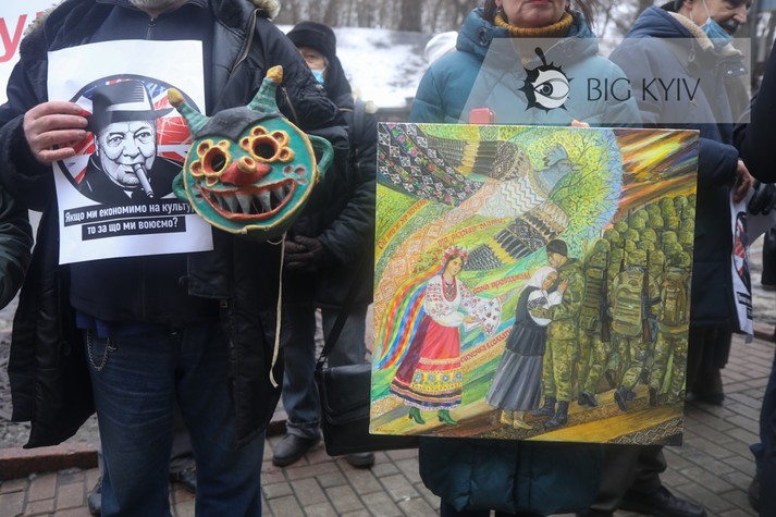 Щоб краще донести свої вимоги, митці взяли на мітинг із собою власні твори, озброїлись плакатами з написами «Мистецтво – це цілісність держави», «Фарби замерзають. Українське мистецтво закінчується на тарифах» та цитатою Вінстона Черчилля «Якщо ми економимо на культурі, то за що ми воюємо?».