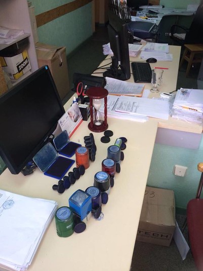 Внаслідок проведених санкціонованих обшуків виявлено та вилучено печатки фіктивних підприємств, чорнові записи, бухгалтерські та фінансово-господарські документи, що підтверджують протиправну діяльність, а також готівку в національній та іноземній валюті на загальну суму близько 2,4 млн грн.