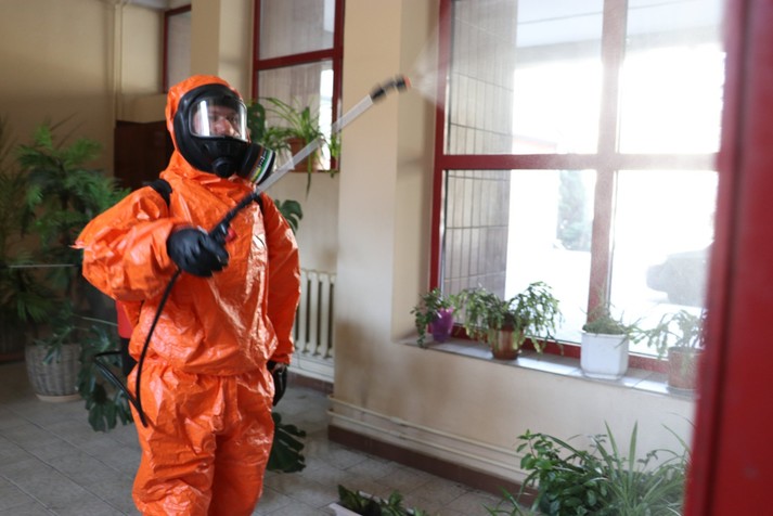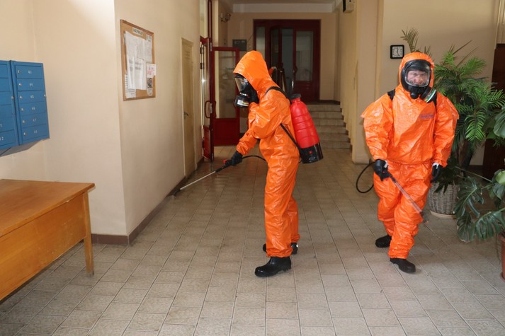 Для дезінфекції використовували спеціальний хлорвмісний розчин, котрий вбиває грамнегативні і грампозитивні бактерії, патогенні дерматофіти та віруси, в тому числі й вірус Covid-19.