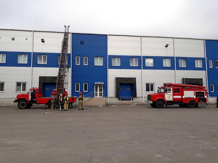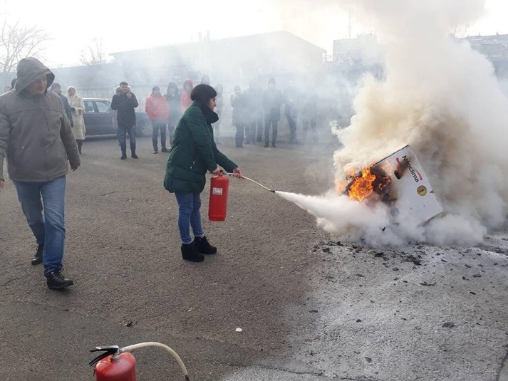 Працівники відпрацювали дії при виникненні пожежі на території підприємства, звісно ж пожежа була умовною.