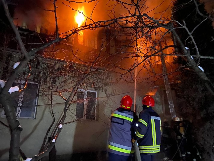 «Пожежа ускладнюється відсутністю пожежних гідрантів та наявністю дерев‘яних перекриттів у будівлі, якими полум‘я стрімко розповсюджується», - долали рятувальники.