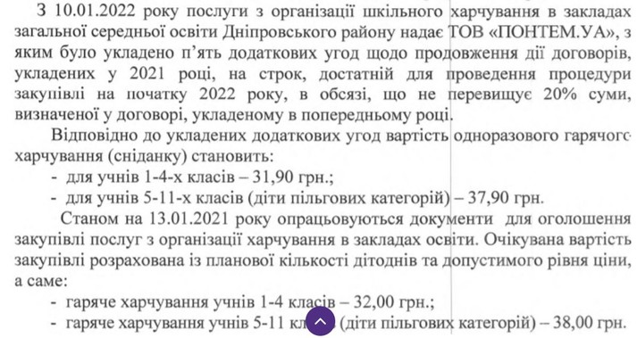 Правда, в Дніпровському районі, судячи з відповіді в.о. начальника управління освіти Ольги Мельникової, очікувана вартість страв після закупівель залишиться в межах колишніх сум.
