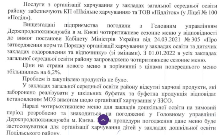 «Зміна вартості харчування відбуватиметься після проведення тендерних процедур та підписання договорів», – зазначив заступник начальника управління освіти Святошинської районної державної адміністрації в місті Києві Людмила Голованенко.