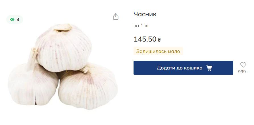 До слова, часник імпортний у мережі «АТБ» коштує 144,89 грн за кіло, Metro пропонує часник за ціною 145,50 грн за кіло.