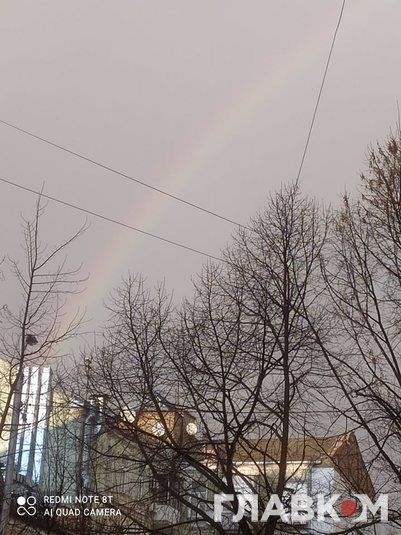 Незвичайне, як для зими, природне явище спостерігали 18 лютого кияни. Після дощу у небі з'явилася веселка.