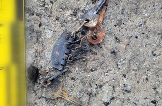 На місці злочину правоохоронці виявили два ланцюжки, хрестик, шестикутну зірку, заколку та три ключі на металевому тримачі.