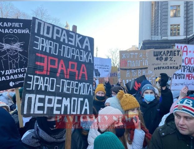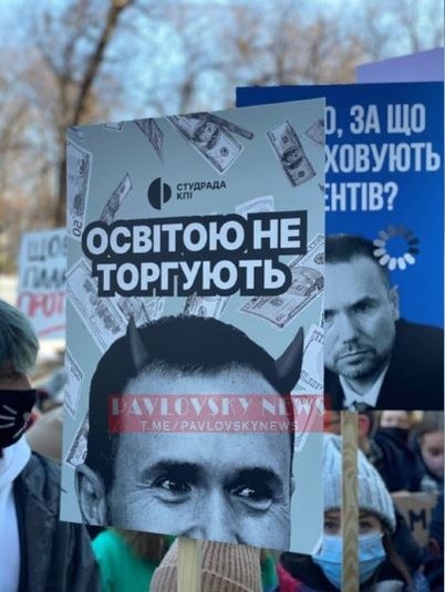 Студенти Києво-Могилянської академії прийшли на мітинг під Кабмін з вимогою звільнити міністра освіти Сергія Шкарлета. Обурення спудеїв викликало рішення міністра не визнавати дійсними вибори президента закладу, на яких переміг Сергій Квіт.