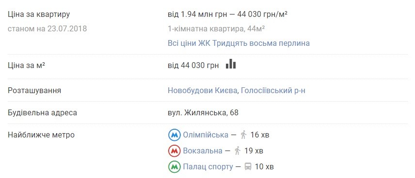 Зазначимо, на сайті ЖК «Тридцять восьма перлина» йдеться про продаж «апартаментів». На одному з сайтів з продажу нерухомості вказано ціну - від 44 030 грн за квадратний метр. Запланований строк здачі об’єкту – ІІІ квартал 2019 року.