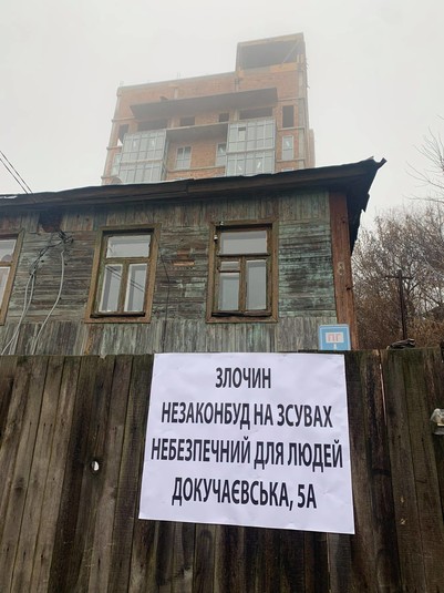 За даними ДАБК, на момент перевірки на ділянці по вул. Докучаєвській, 5-А будувалася будівля невизначеного призначення, яка відповідно до візуального огляду на той час мала 8 поверхів, проводилося будівництво 9-го поверху.