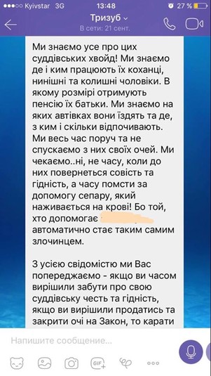 Погрози надходили на особисті мобільні телефони суддів в месенджер Viber