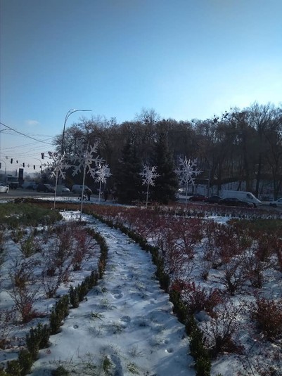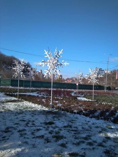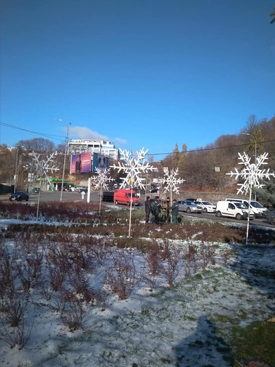 «Створюємо казковий настрій столиці. На площі Великої Вітчизняної війни виконано заміну сезонного декору. На місці металевих листків змонтовано 5 3D сніжинок. Свято наближається!» - йдеться в повідомленні.
