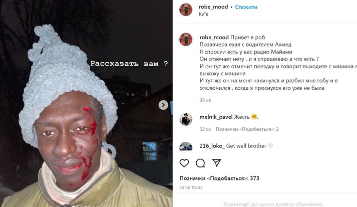 У Києві таксист побив пасажира через прохання увімкнути «Радіо Маямі». Про це чоловік на ім’я Роб повідомив особисто на сторінці в Istagram.
