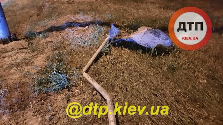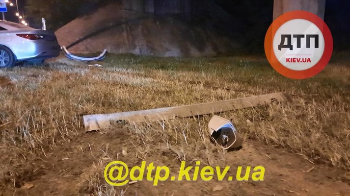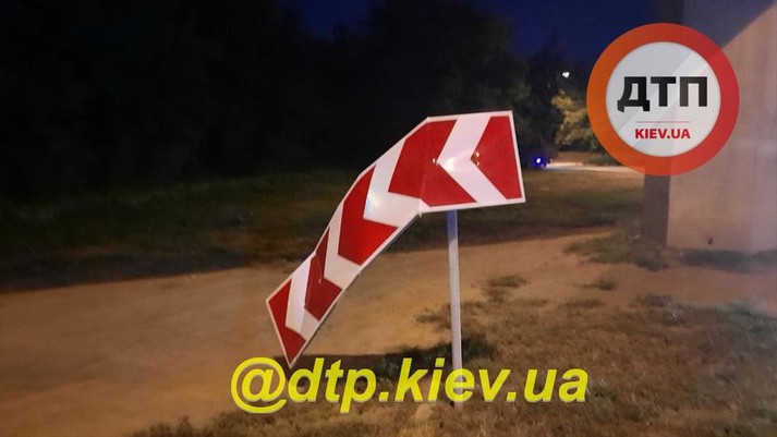 Таксист вилетів із мосту Метро на газон і зніс дорожній знак (фото)