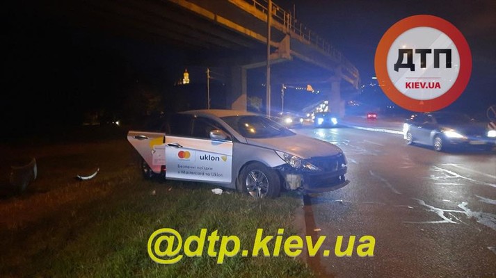 У четвер, 5 серпня, пізно ввечері на з’їзді з моста Метро сталася дорожньо-транспортна пригода за участі автівки Hyundai служби таксі Uklon. Аварія трапилася в напрямку лівого берега. Про це повідомляє dtp.kiev.ua.