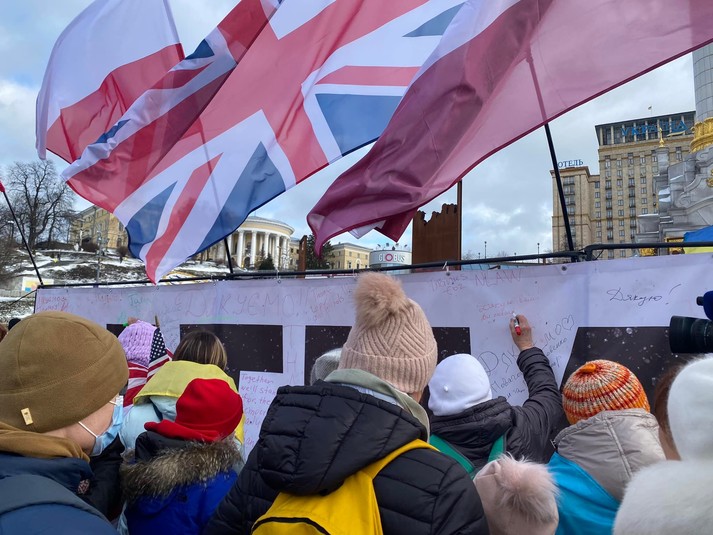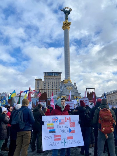 У києві на Майдані Незалежності проходить акція подяки міжнародним партнерам України за допомогу та підримку у протистоянні російській загрозі. Напередодні акцію анонсувала організація «Демократична Сокира».