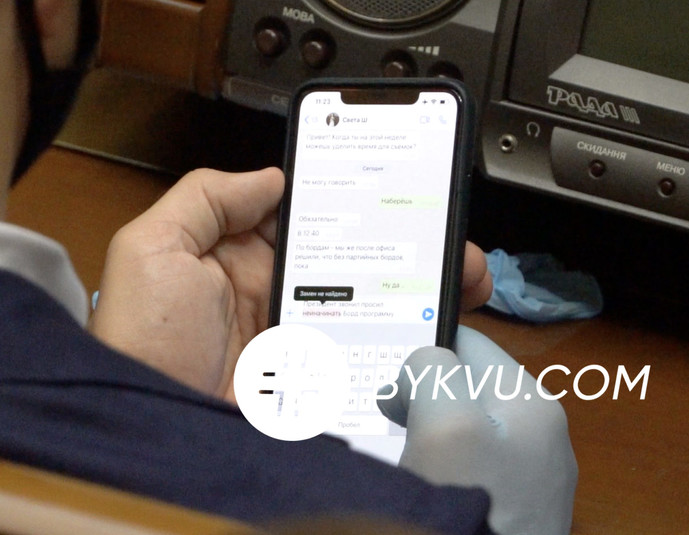 Пізніше Тищенко вже у спілкуванні з якоюсь Світланою Ш про знімання на цьому тижні згадує, що президент просив його не починати бордпрограму.