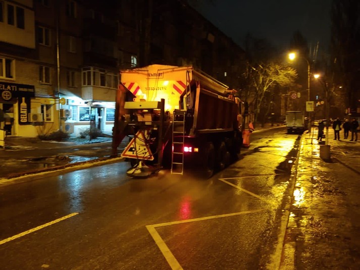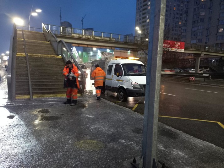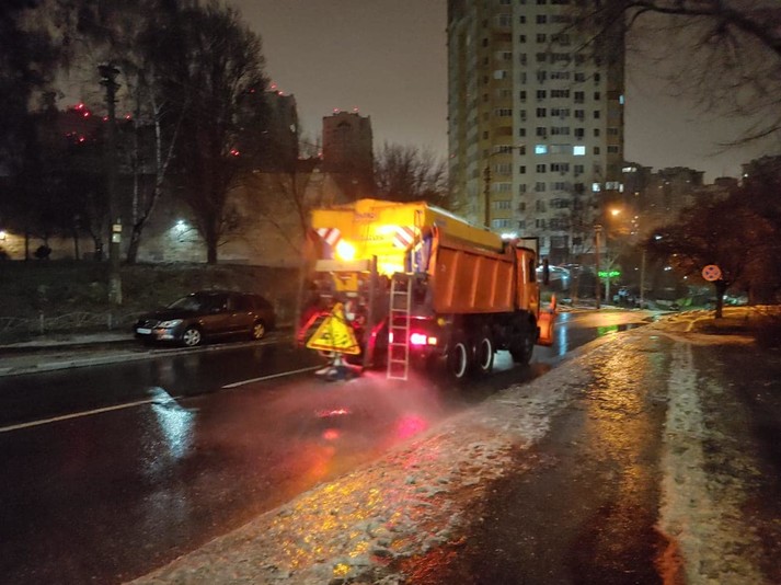 У Києві продовжується обробка доріг і тротуарів протиожеледними засобами. Адже через нестійку вологу погоду вночі відбувається намерзання льоду. Про це повідомляє комунальна корпорація «Київавтодор».