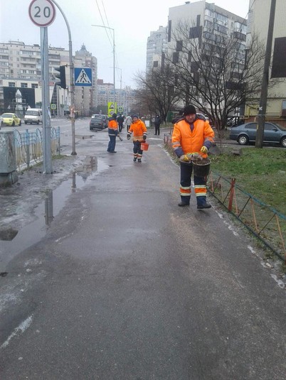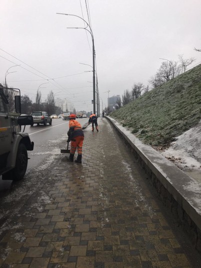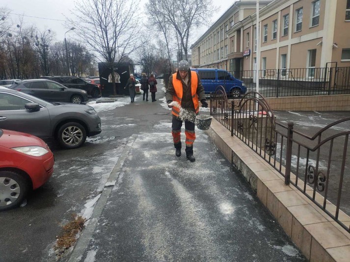 Тисячі тонн солі й піску: як у вихідні в Києві боролися з ожеледицею (фото)