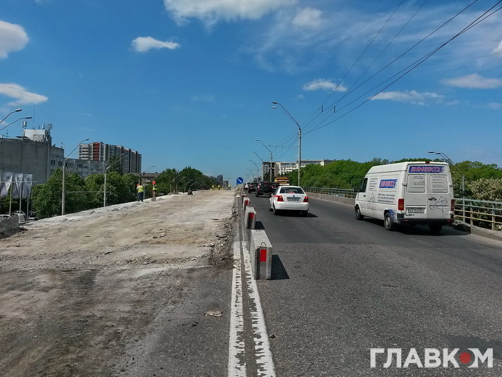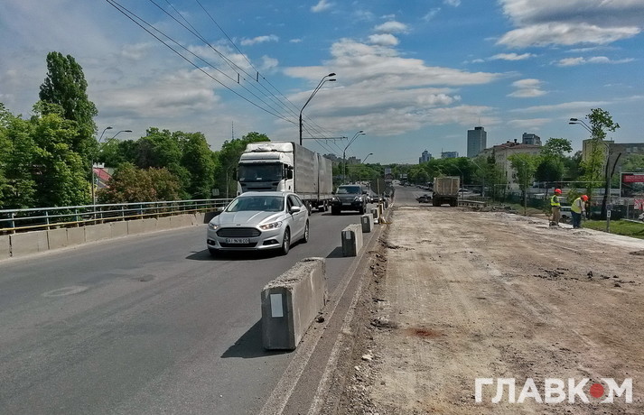 На даний час тривають роботи на частині шляхопроводу у напрямку центра Києва. Вже знято асфальтне покриття і робочі закріплюють опалубку. Дорогу на мосту буде розширено до трьох смуг у кожному напрямку.