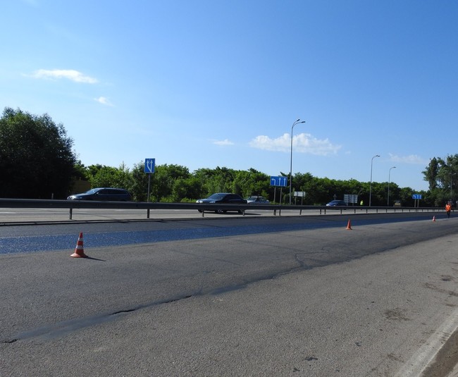 Минулого тижня аналогічний вид ремонтних робіт було проведено на км 44 траси М-05 «Митницька розв'язка».