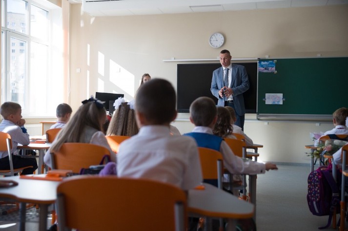 Кличко передав символічний ключ від школи директору навчального закладу та завів першокласників на їхній перший урок.