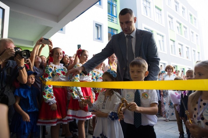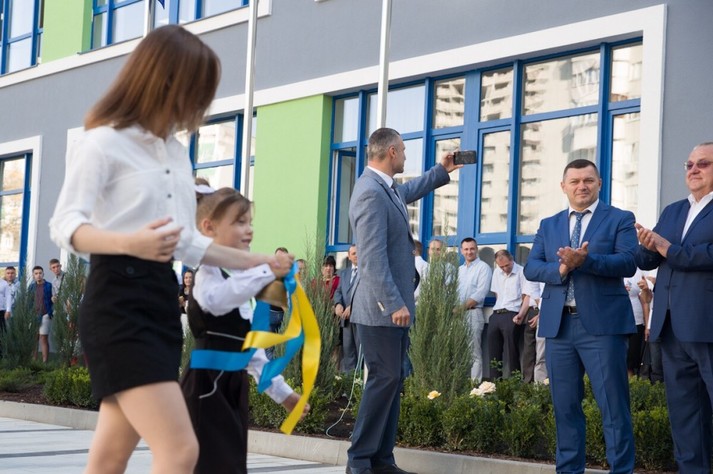 Мер Києва Віталій Кличко привітав школярів столиці з початком нового навчального року та урочисто відкрив нову школу на вулиці Хорольській, 19 у Дніпровському районі Києва.